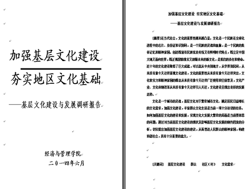 通过大量的调研和走访工作,学院最终形成了关于《加强基层文化建设 夯实地区文化基础》的调研报告。该报告中详细阐述了基层文化建设的现状,分析了制约基层文化建设的因素,提出了加强基层文化建设的思路和建议。给当地相关主管部门在基层文化建设方面提供了一个有益的参考资料。